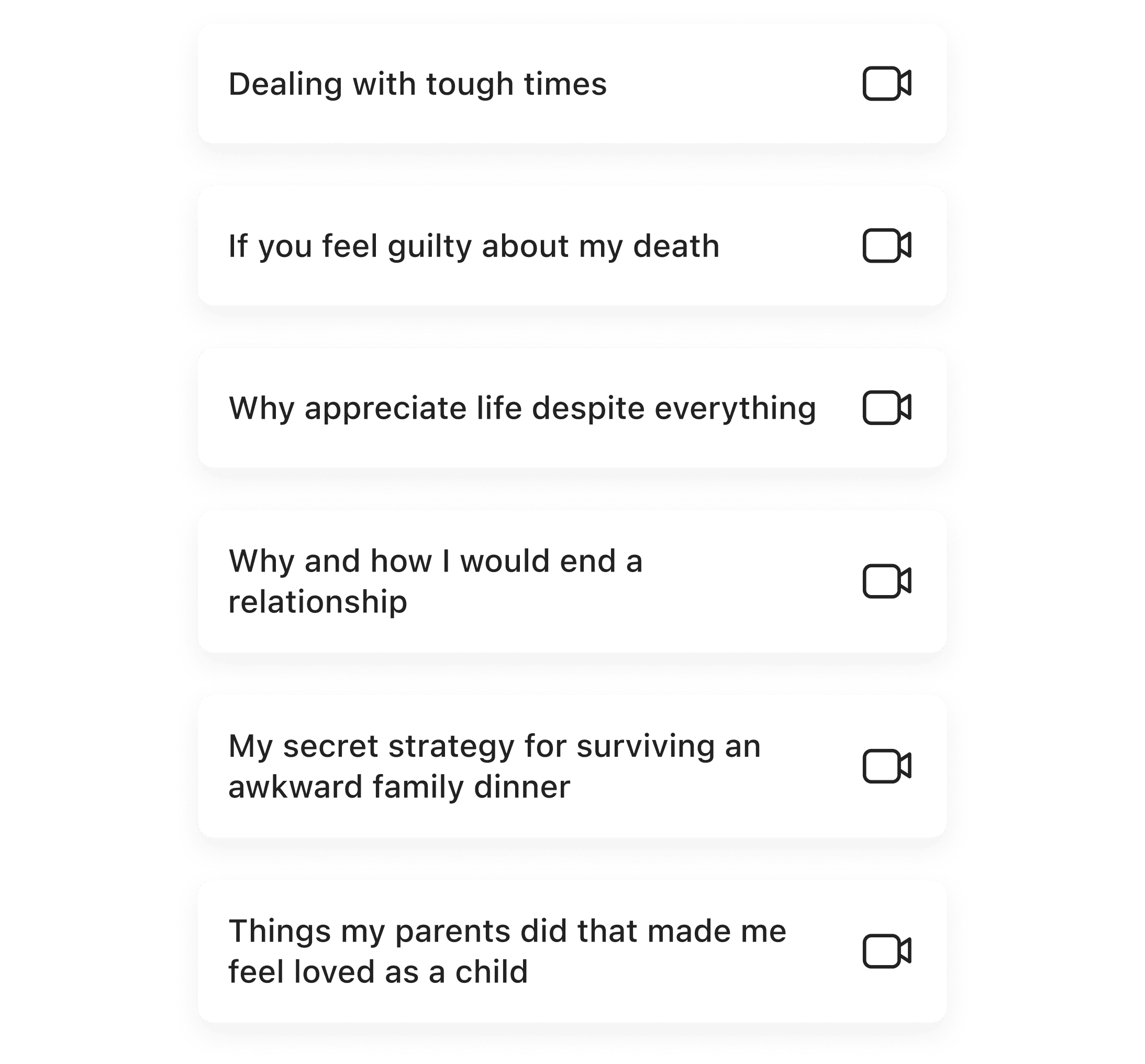 Reflect on life and mortality, preserve memories, and create personal messages they’ll cherish for a lifetime.