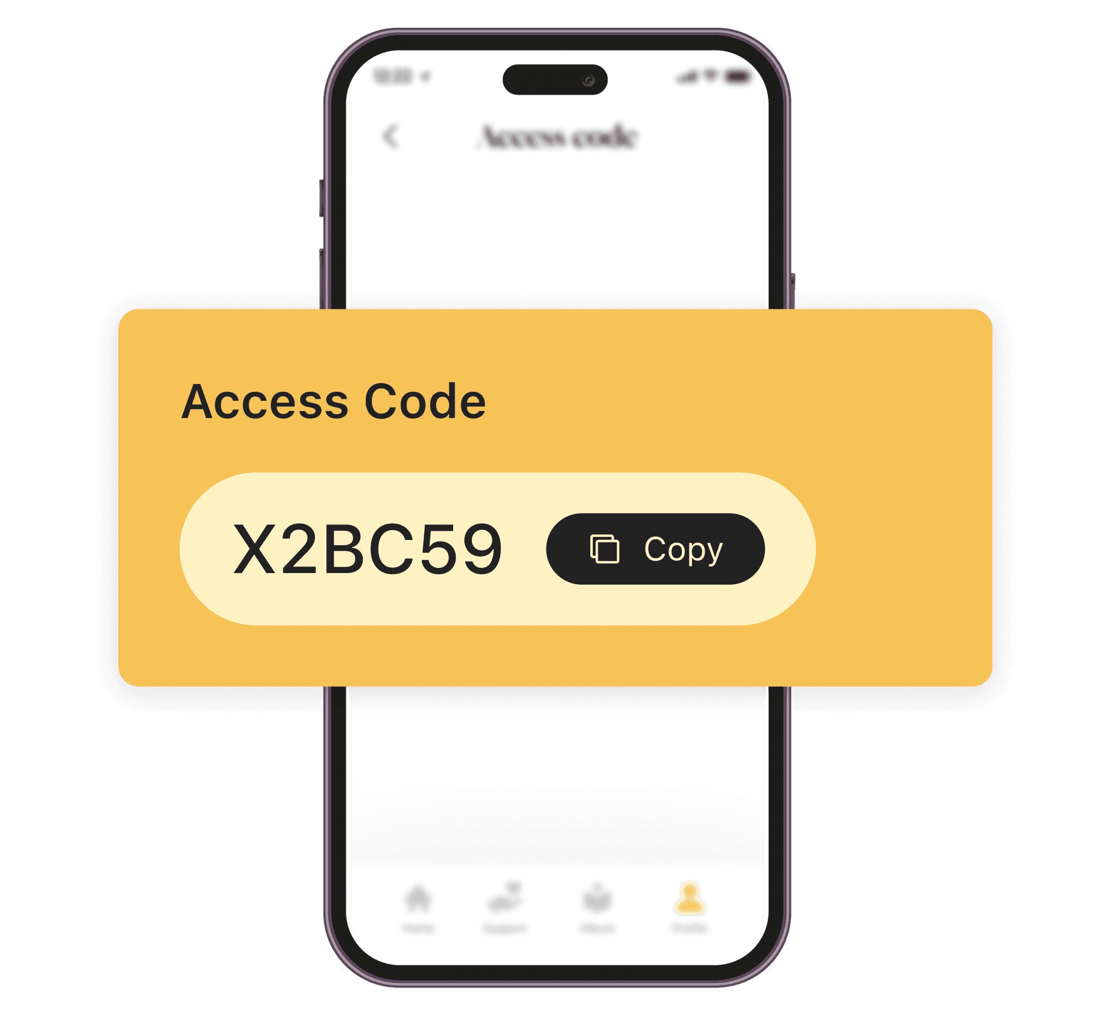 Share your code with your child or a trustee who can pass it on later. By simply creating an account with this code, they can access your messages.